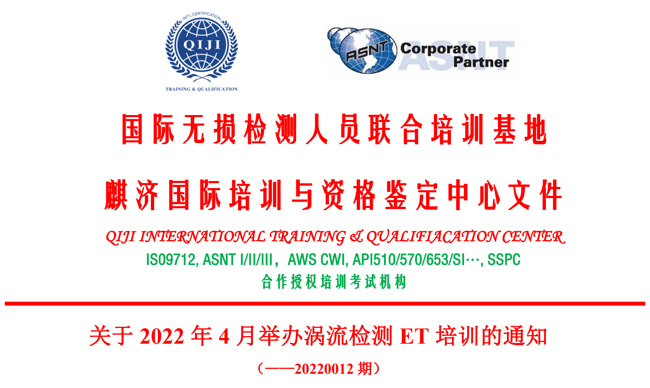 麒济2022年4月涡流无损检测ET培训通知