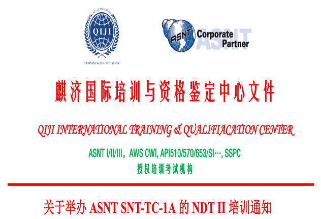 麒济国际培训与资格鉴定中心是ASNT上海分部授权合作培训机构,即麒济国际培训中心只负责ASNT 3级的相关培训工作,后期和考试相关的任何信息(目前计算机考试机房建设中),请联系学会或参看学会网站www.chsndt.org。特此声明!