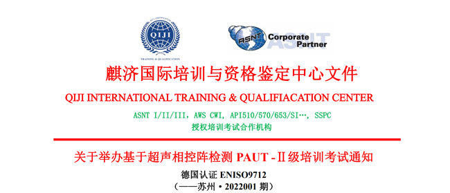 关于举办无损检测超声相控阵检测PAUT -Ⅱ级培训考试通知(德国认证ENISO9712)