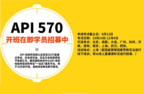 API 570:工艺管道检验属于API对行业某些具备专业技能人员的资格考核认证,在全球业界受到广泛认可。越来越多的检验师通过参加API每年举办的ICP考试成为API认证检验师。