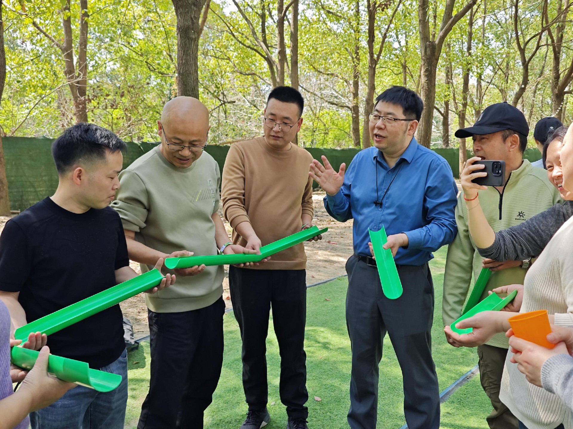 手握PVC管道,目光追随滚动的圆球——团队成员化身“人形轨道”,在接力传递中精准把控节奏。每一次掉球后的重振旗鼓,每一句“稳住,慢一点”的默契提醒,让高效协作与资源统筹的理念悄然扎根。
